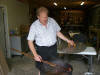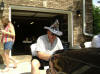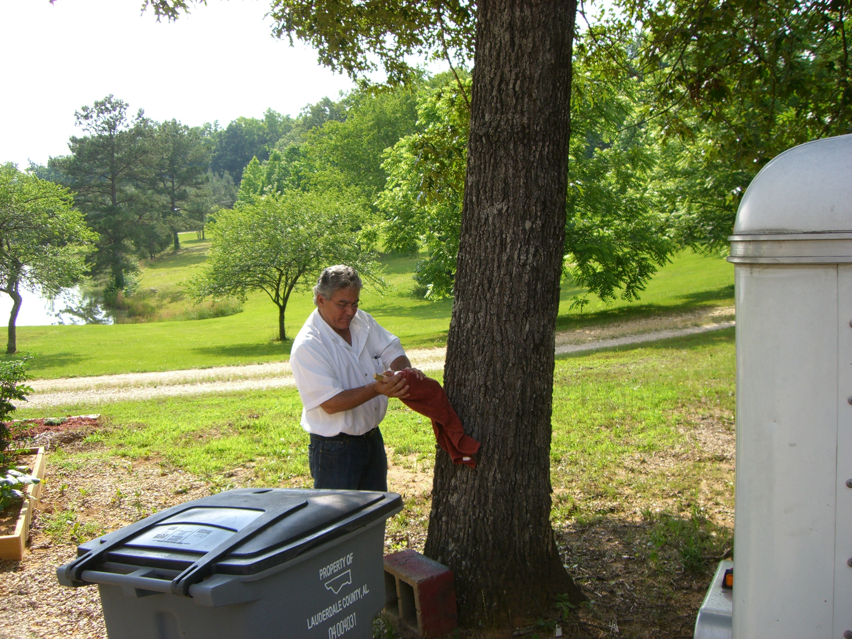 Sergio demonstrated how to open a wine bottle by banging it against a tree